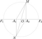 解析 如图,记 $c=\sqrt{a^2+b^2}$,则 $|OM|=\dfrac12|F_1F_2|=c$,而 $|OA_1|=|OA_2|=a$,于是 $NA_1\perp A_1A_2$,$ MA_2\perp A_1A_2$.