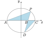 已知椭圆 $\dfrac{x^2}4+\dfrac{y^2}3=1$ 的左、右顶点分别为 $A,C$,$P\left(1,\dfrac 32\right)$ 是椭圆上一点,$B$ 是椭圆实轴上一点,直线 $PB$ 交椭圆于不同于点 $P$ 的点 $D$,若 $\triangle APB$ 与 $\triangle BCD$ 面积之差为 $\dfrac 32$,则点 $D$ 的坐标为_____.