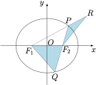 已知椭圆 $\dfrac{x^2}4+\dfrac{y^2}3=1$ 的左、右焦点分别为 $F_1,F_2$,圆 $F_1:(x+1)^2+y^2=16$,过 $F_1$ 的直线分别交椭圆、圆于 $x$ 轴上方的点 $P,R$,直线 $PF_2$ 交椭圆于不同于 $P$ 的点 $Q$,若 $\triangle F_2PR$ 的面积与 $\triangle QF_1F_2$ 的面积之比为 $\dfrac 35$,则点 $P$ 的坐标为_____.
